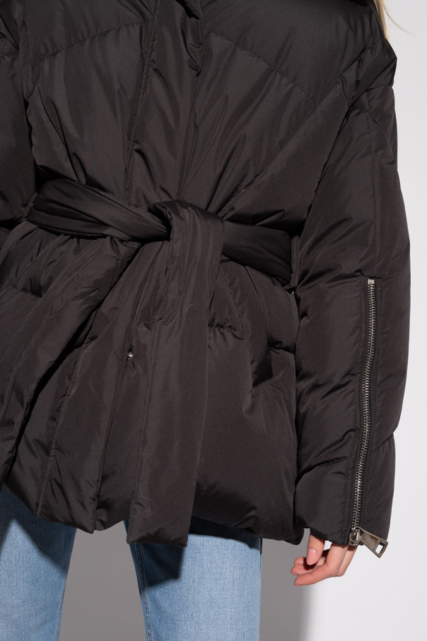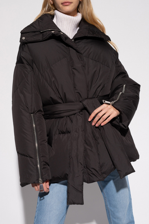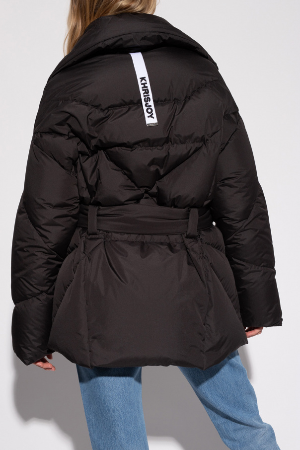 Black jacket from Khrisjoy. Fastened with a two-way zipper, this style features two slip pockets, a waist-cinching belt and long sleeves with zipped cuffs.