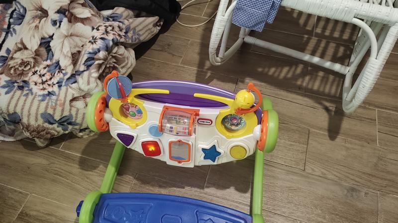 Развивающий центр 5в1 Little Tikes – это многофункциональный игровой центр, который способствует развитию мелкой моторики, тактильного восприятия, фантазии и воображения. Этот центр содержит в себе 5 различных игровых панелей для детей разного возраста. Возможность установки центра в разных вариантах позволяет подобрать наиболее интересный и удобный вариант для ребенка определенного возраста. Так для самых маленьких центр удобно расположить над малышом, чтобы он смог дотянуться до подвесных игрушек и кнопок. Когда ребенок сможет самостоятельно сидеть, угол наклона панели можно установить так, чтобы малышу было удобно перебирать игрушки и нажимать на клавиши. Установив панель горизонтально, ребенок сможет опираться на нее и играть. Перевернув панель, центр превращается в удобный столик-мольберт с сидением.