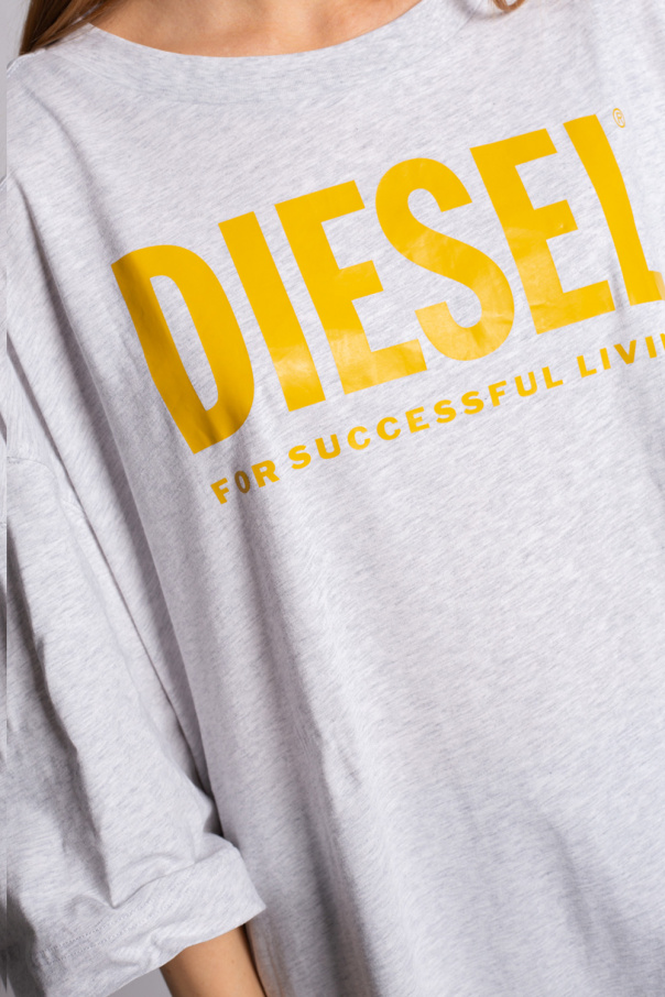 Grey and yellow crewneck T-shirt from Diesel. Made of cotton, this oversize design boasts the label’s printed logo.