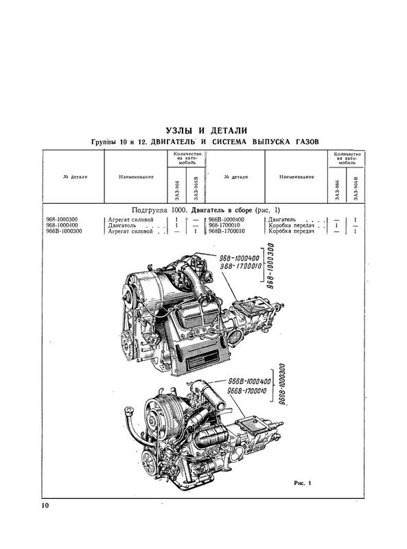 Репринтная книга: ЗАЗ 966/966В Запорожец. Каталог запасных частей.
