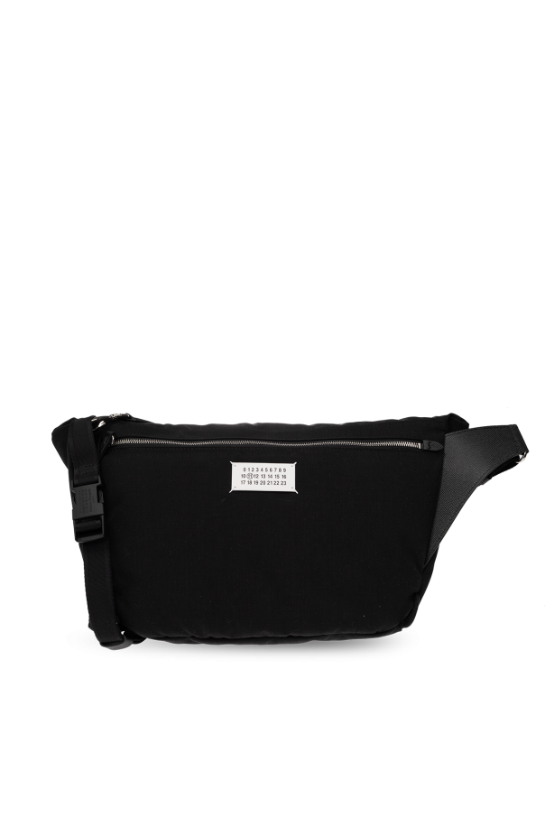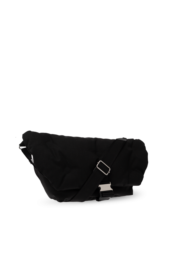 Black ‘Glam Slam’ shoulder bag from Maison Margiela. Crafted from fabric, this design secures with a silver-tone snap with an engraved logo and features a signature white logo patch and zip pocket on the back, an adjustable shoulder strap and one internal compartment with a zip pocket.