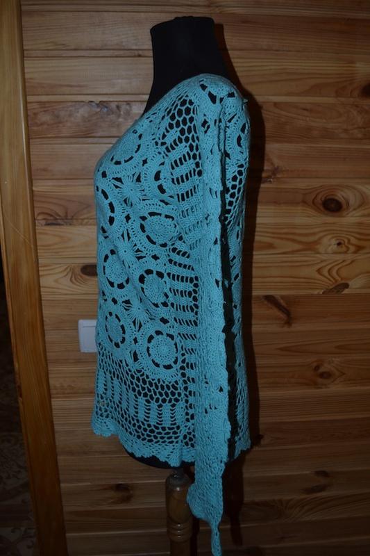 Красивая эксклюзивная кофта из яркой бирюзовой пряжи вязаная крючком!