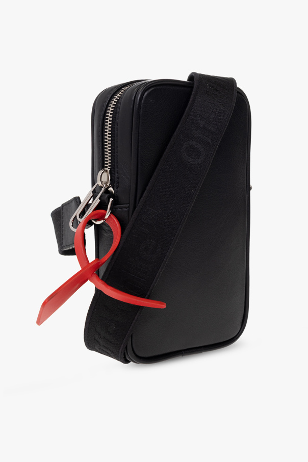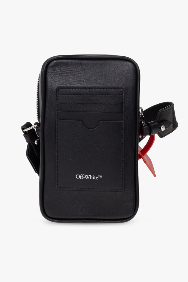 Black ‘Hard Core’ phone pouch from Off-White. Made of leather, this design features a zip fastening, logo print and four card slots at the back, detachable and adjustable shoulder strap with the brand’s signature red zip tie and one internal compartment with one card slot.