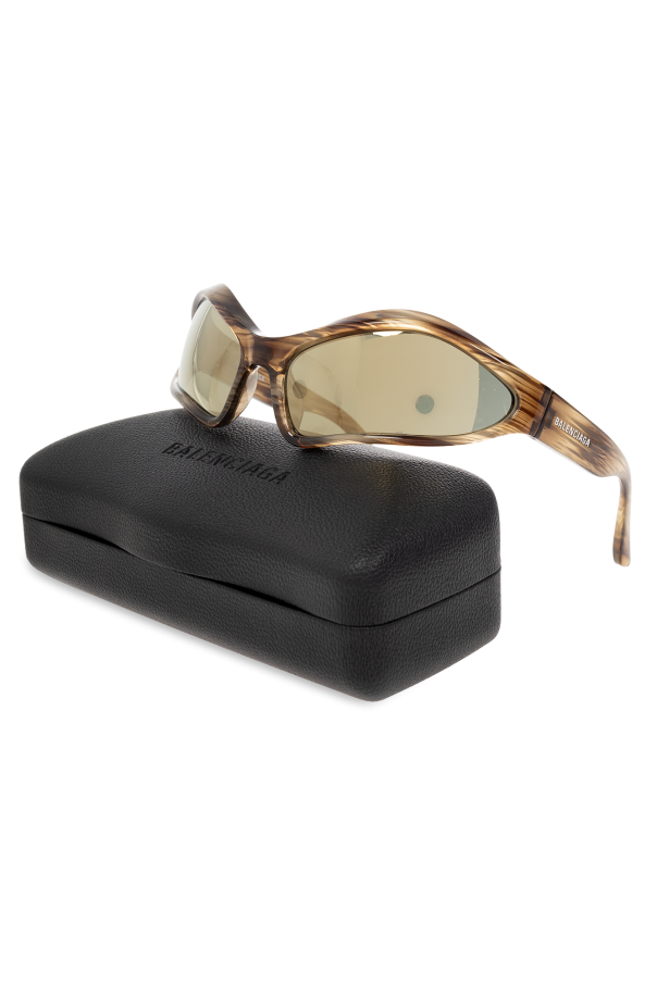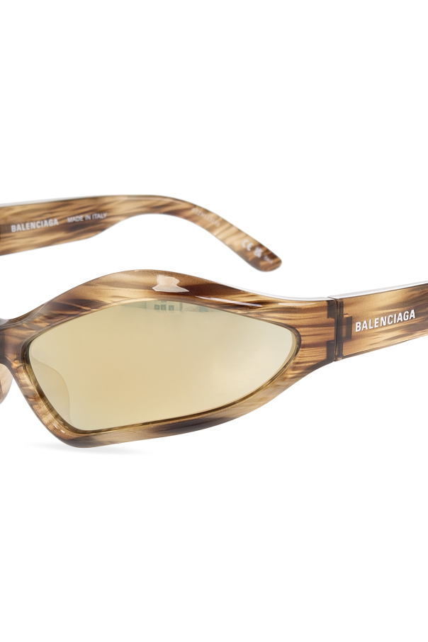 Brown and grey ‘Fennec’ sunglasses from Balenciaga. Made of nylon, this pair features rounded frames, white logo details to the temples and grey lenses with golden-tone mirror effect and UVA/UVB protection.