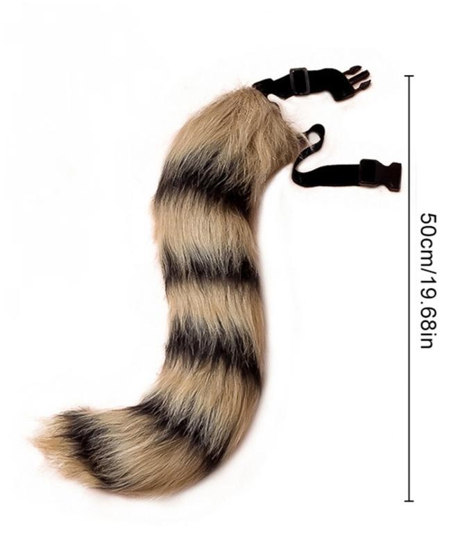 Хвост енота на регулируемой резинке с фиксатором на поясе