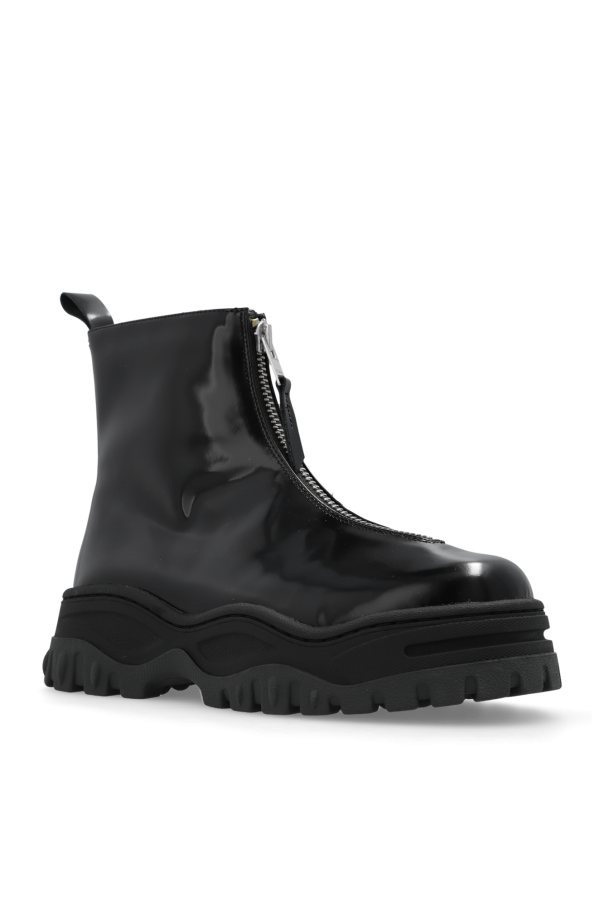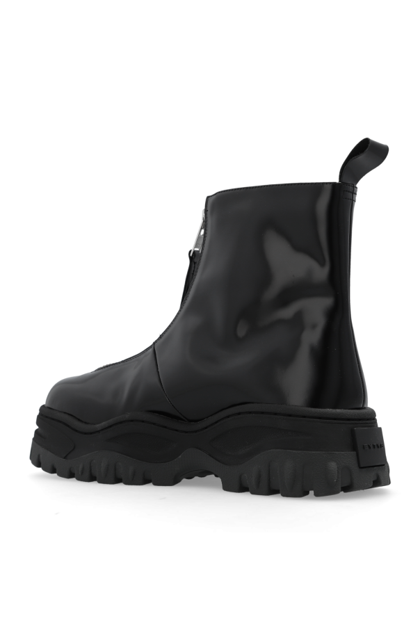Black ‘Raven II’ ankle boots from Eytys. Made of leather, this model sits on a black rubber sole and features a zip fastening and the brand\'s logo embossed on the back.