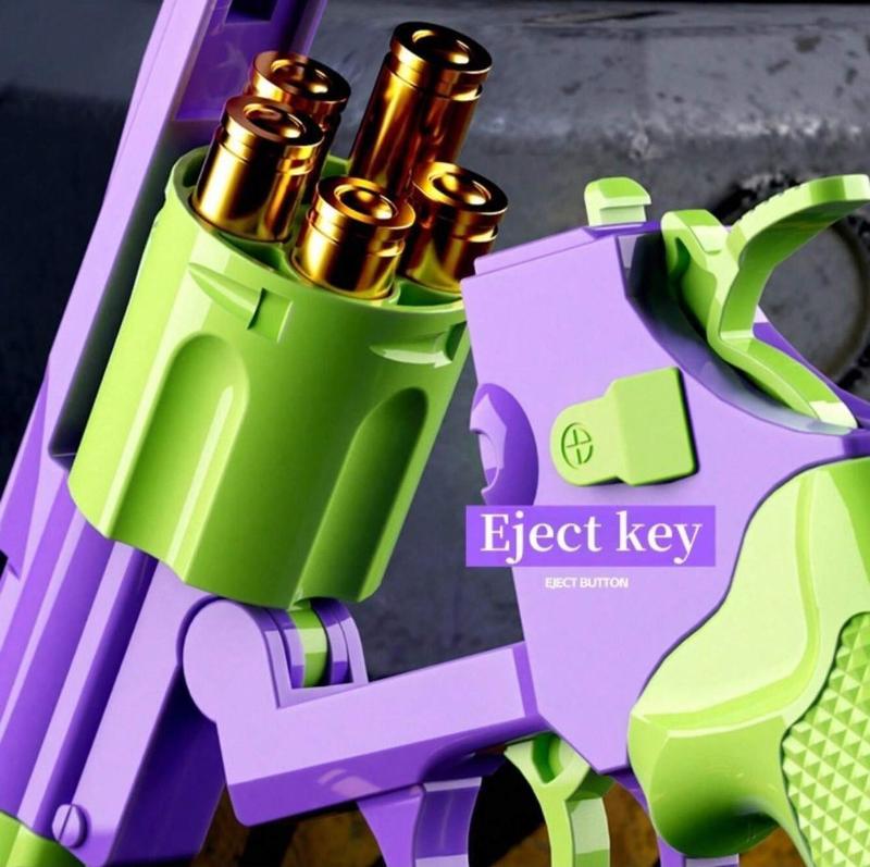 Игрушечный пластиковый револьвер стреляет пластиковыми пулями с гильзой