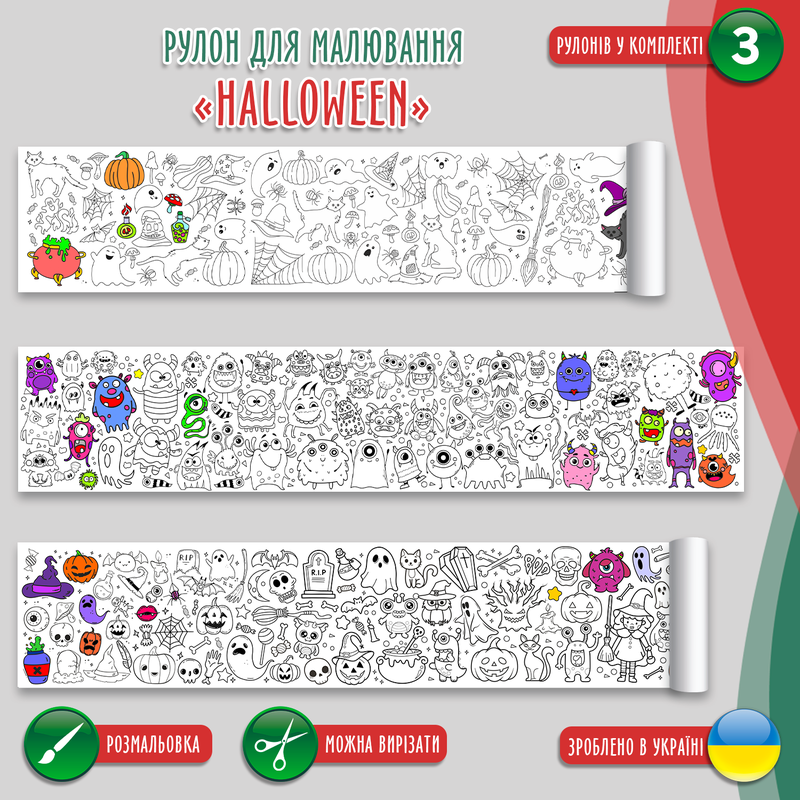 Розмальовка-рулон (рулон для малювання) розмальовка в рулоні "Хелловін. Halloween", 60 х 300 см