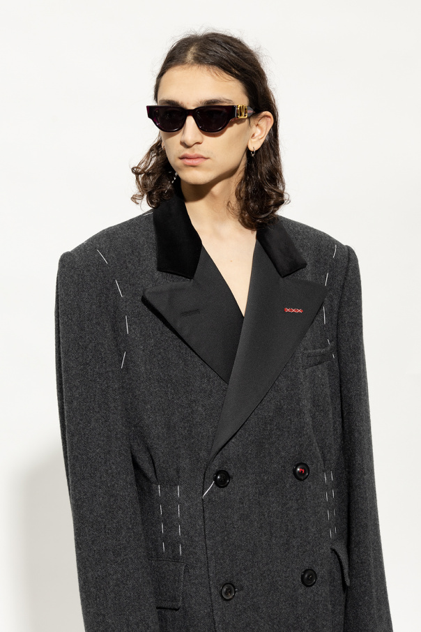 Dark purple sunglasses from Valentino Eyewear. Made of Japanese acetate, this pair features cat-eye frames, temples with gold-tone VLogo titanium removable buckle and grey lenses with 100% UV protection. Handcrafted in Japan. Comes with a recycled leather case with strap and cleaning cloth.