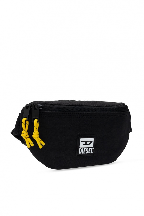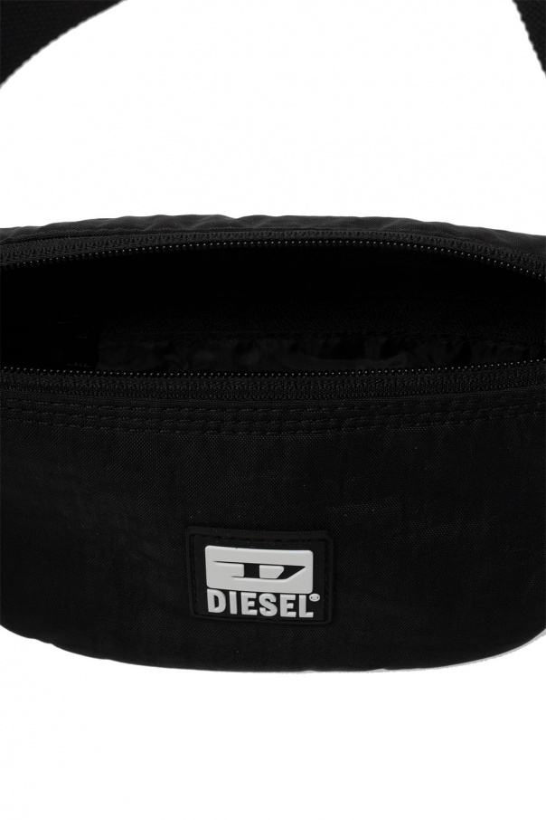 Black \'Byga\' belt bag from Diesel. Fastened with a zip, this design features a rubber patch with a white logo, back zip pocket, adjustable belt and one internal compartment with one zip pocket.