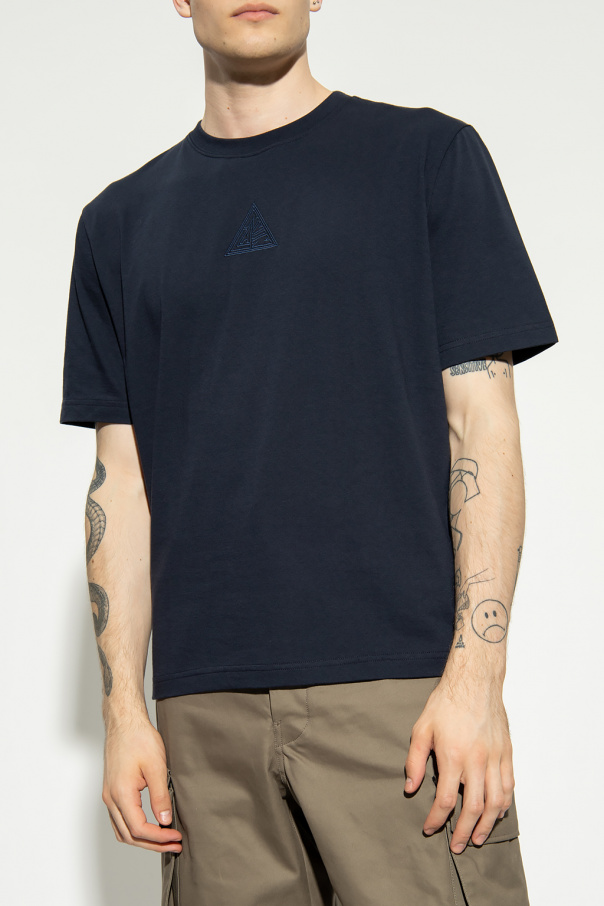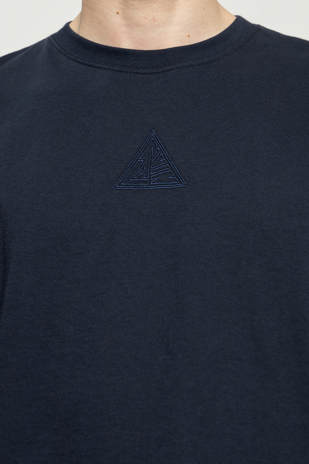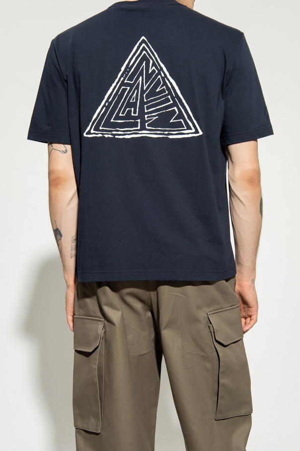 Navy T-shirt from Lanvin. Crafted from cotton, this short sleeve design features an embroidered logo pattern and ribbed crew neck.