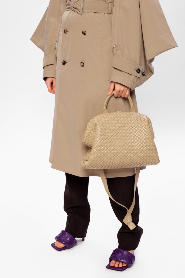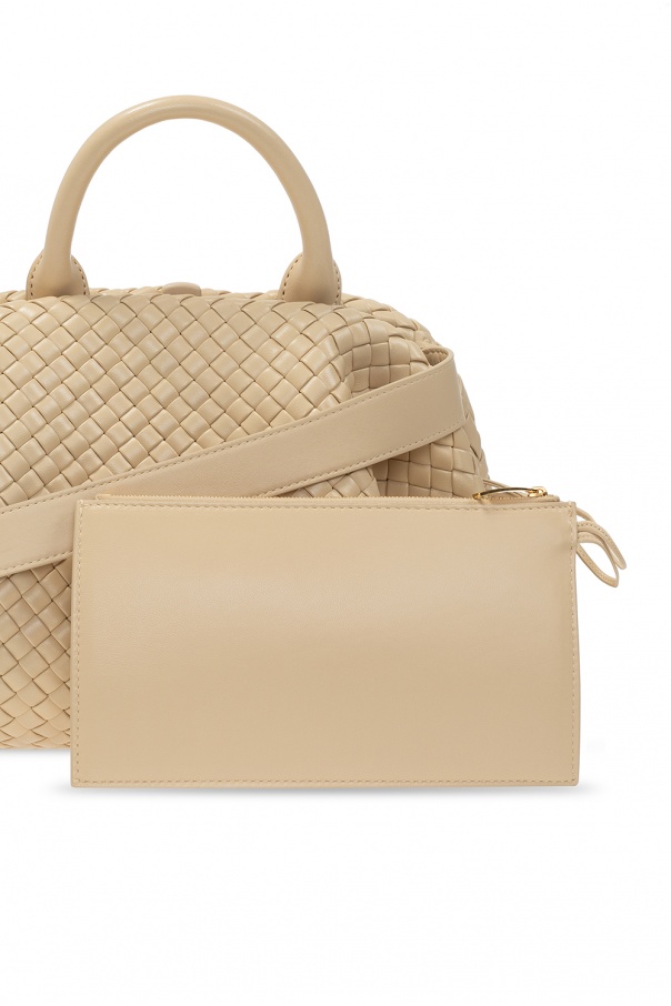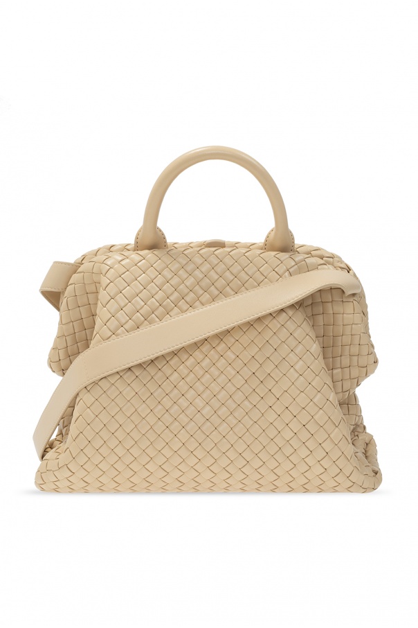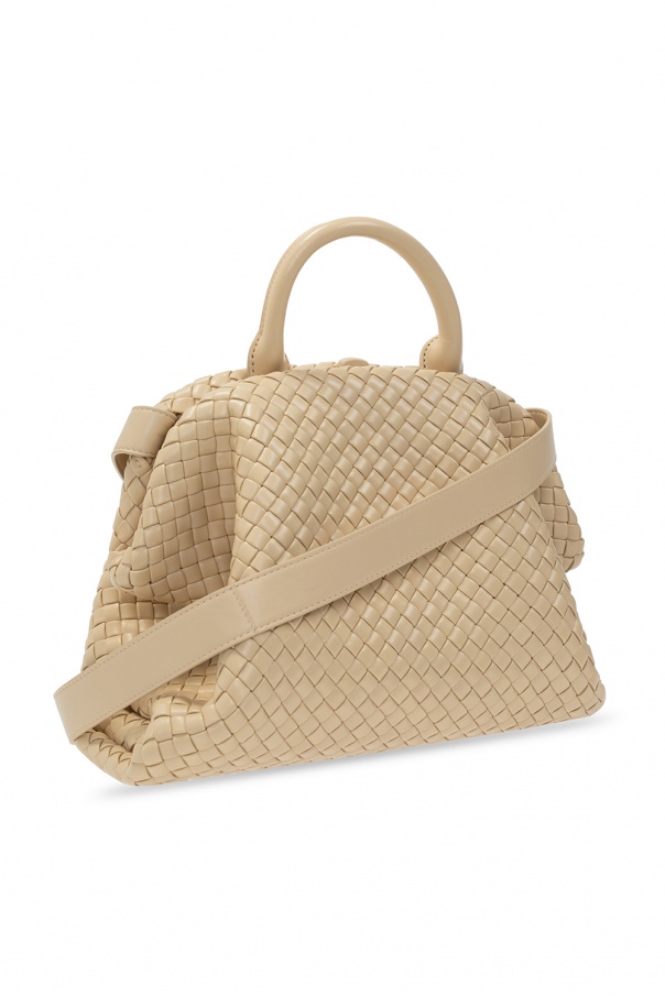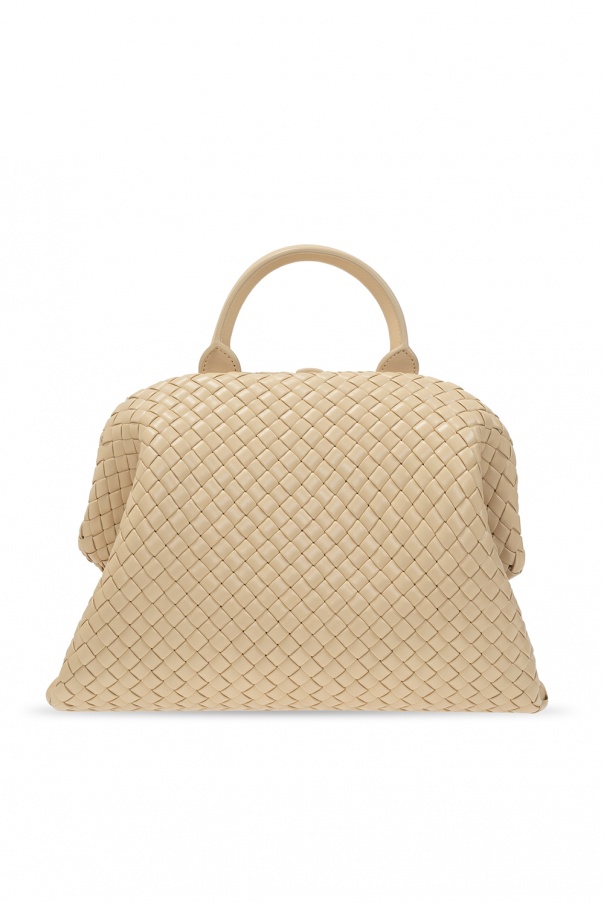 Beige ‘BV Handle’ shoulder bag from Bottega Veneta. Crafted from lamb leather with the iconic Intrecciato weave, this item features a half-round handle, detachable shoulder strap and one internal compartment.
