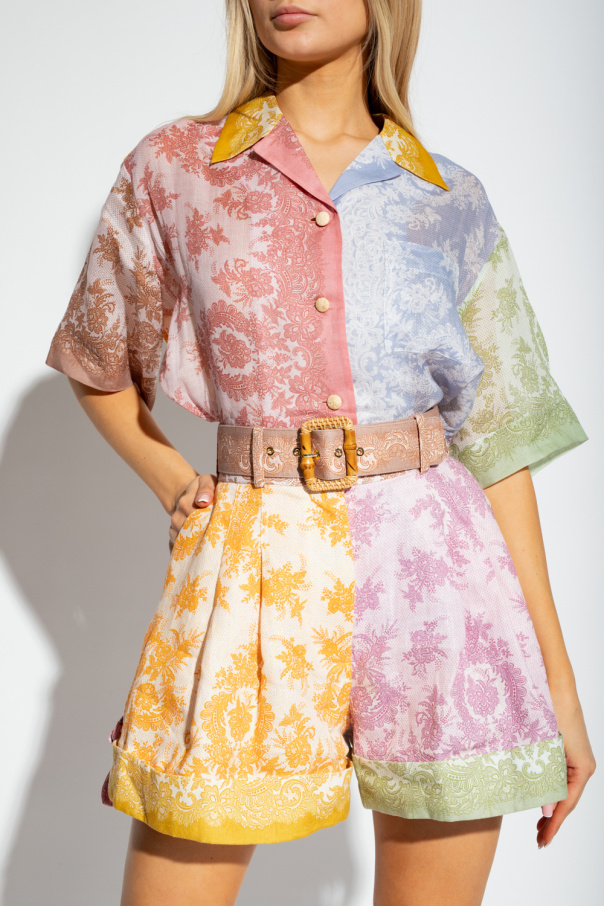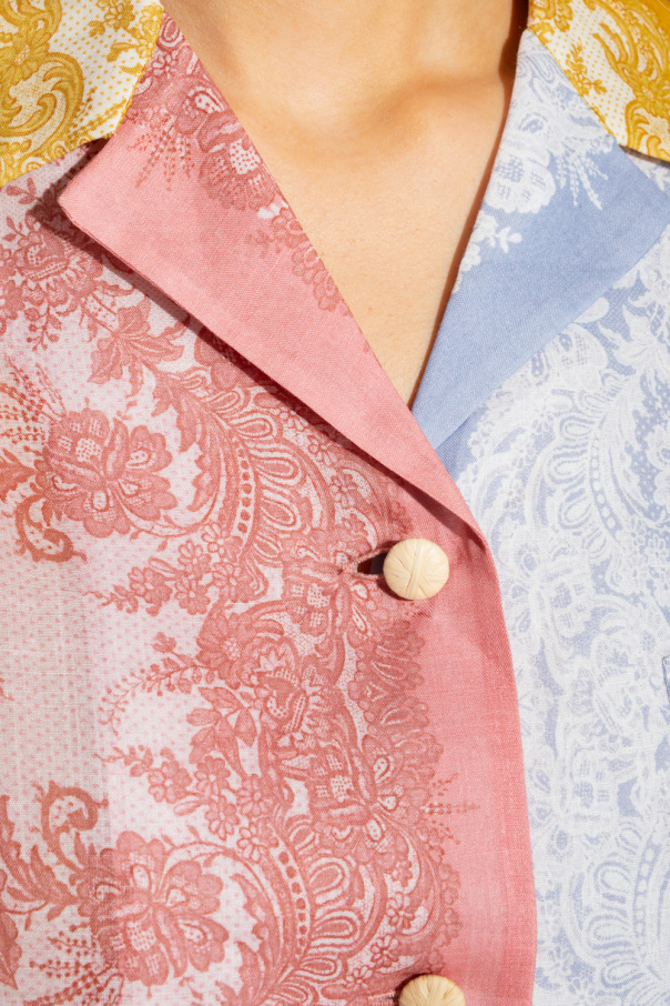 Mutlicolored shirt from Zimmermann. Made of ramie, this loose-fitting design has button fastenings, a printed lace motif, front pocket and short sleeves.