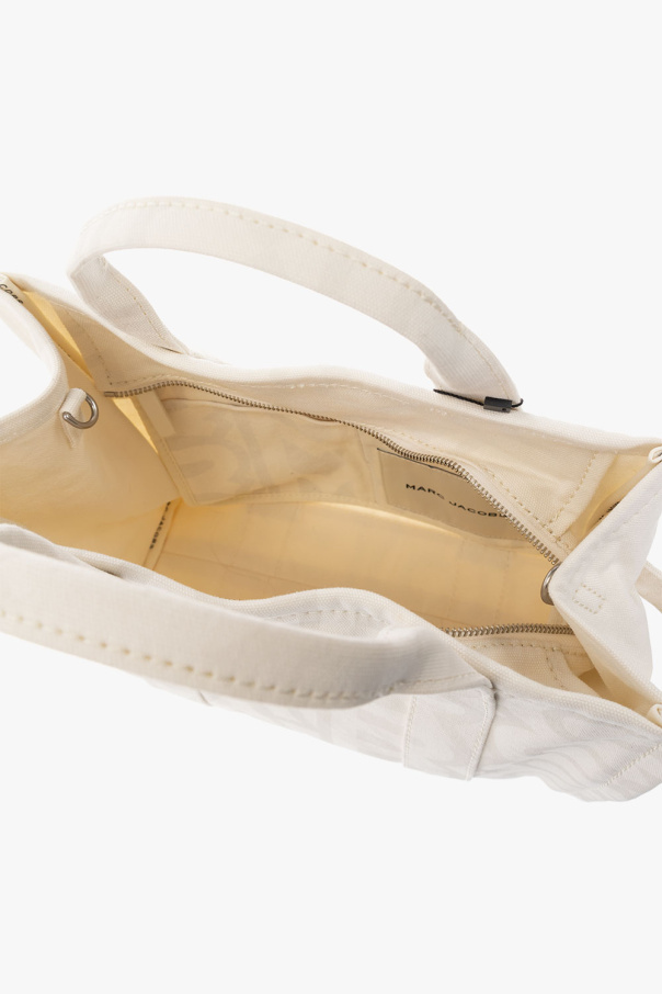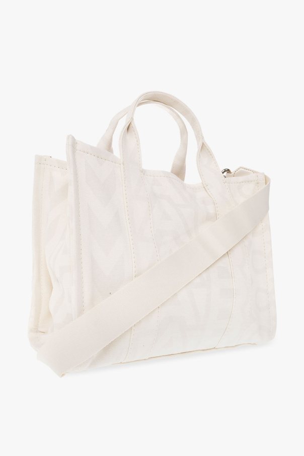 Cream ‘The Tote Medium’ shopper bag from Marc Jacobs. Crafted from cotton canvas, this design fastens with a zipper and showcases a monogram pattern and a back patch. It is complete with a detachable and adjustable shoulder strap, two half-round handles, silver-tone metal hardware and one internal compartment with one zip pocket and two slip pockets.
