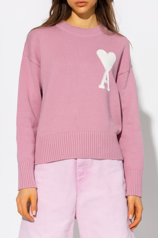 Pink sweater from Ami Alexandre Mattiussi. Crafted from wool and organic cotton with the GOTS certificate, this garment features a white Ami de Coeur embroidery and ribbed trims at the round neck, hem and cuffs.