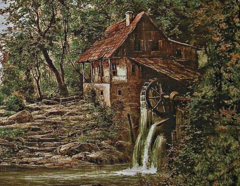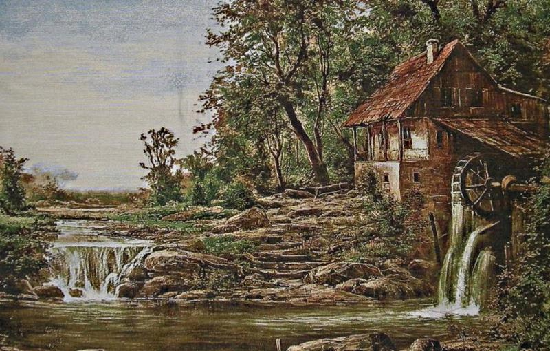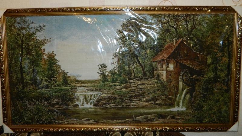 Гобелен Водяная мельница в рамке 60 х 120 см.