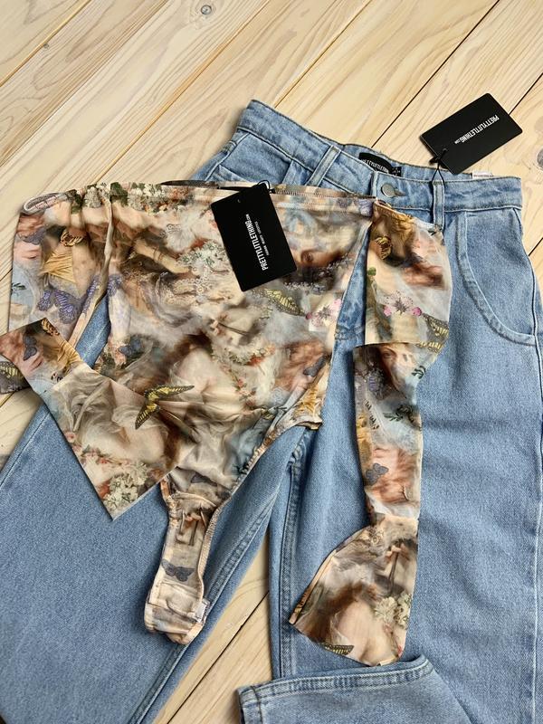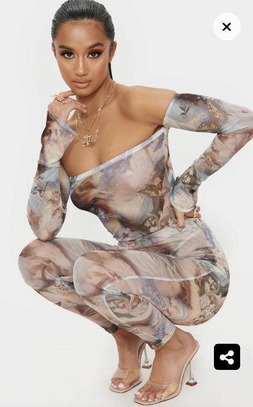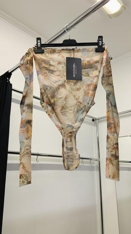 Красивый боди сетка с принтом. Открытые плечи. Ефект тату