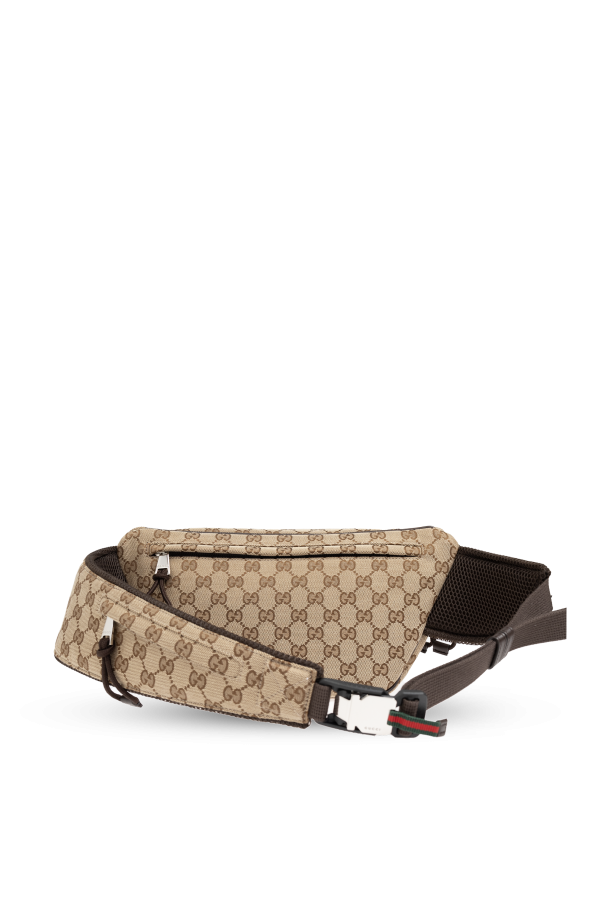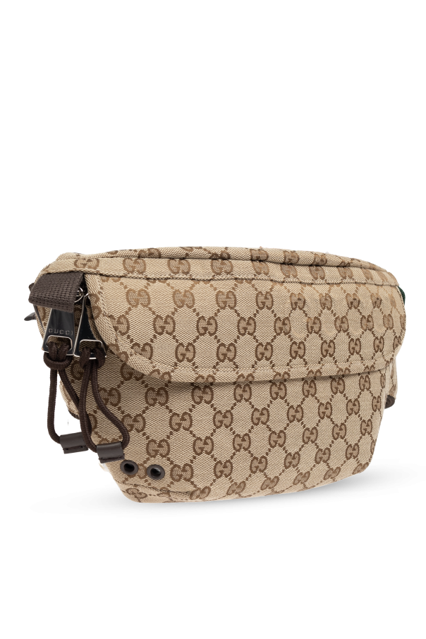 Introducing the Belt Bag in GG Supreme Canvas from the exclusive collection by the renowned designer Gucci. This exquisite piece embodies a perfect blend of classic design and modern luxury. The bag boasts a timeless rectangular shape with gently rounded edges, enveloped in the iconic GG Supreme pattern. This signature motif features repeating \"GG\" initials in two shades of brown set against a beige background, exuding sophistication and style. Crafted from durable canvas, this belt bag is designed to withstand daily use. The zip closure and other finishing touches are elegantly fashioned from brown leather. The main compartment, lined with black fabric, is secured by a front zipper adorned with leather pull tabs, ensuring ease of access and closure. The adjustable strap, featuring brown material with green and red accents, allows for versatile wear either on the hip or across the body, adding a distinctive touch that is unmistakably Gucci. The interior is spacious and includes an additional zippered pocket for added convenience and organization. Why You Should Buy This Product Iconic Design: Features the signature GG Supreme pattern. Premium Materials: Made from durable canvas and luxurious leather. Functional Details: Includes a spacious main compartment and an additional zippered pocket. Adjustable Strap: Wear it on the hip or across the body for versatile styling. Exclusive Collection: Part of Alessandro Michele\'s innovative and eclectic designs.