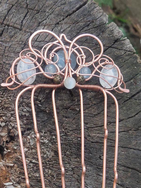 сделан из меди + хрусталь, аквамарин и кошачий глаз