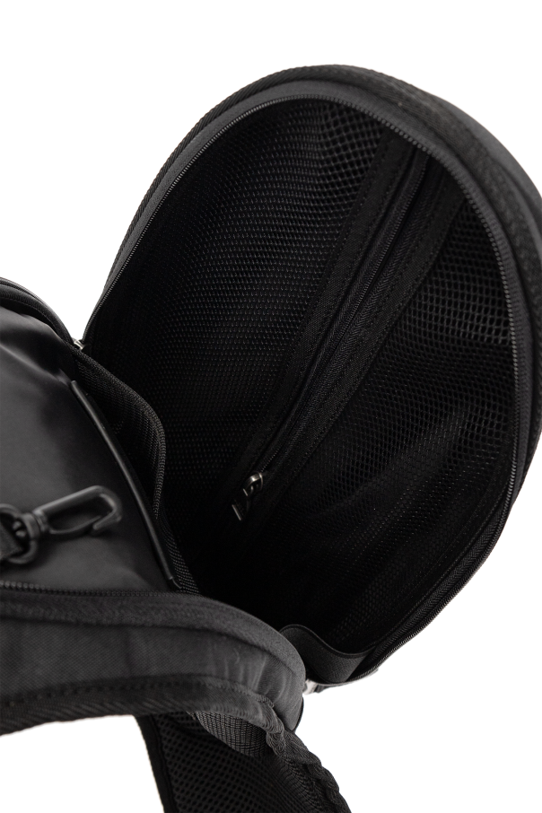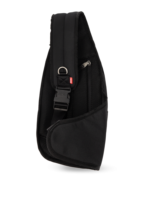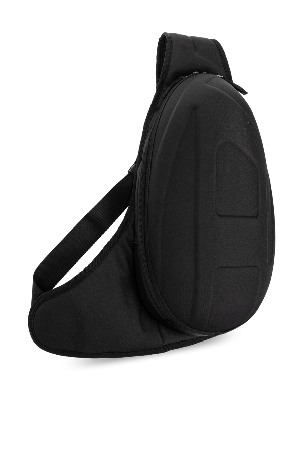 Black ‘1DR-POD’ one-shoulder backpack from Diesel. Fastened with a two-way zip, this model features a tactile logo, zipped back pocket, adjustable shoulder strap, antique silver-tone metal hardware and one internal compartment with one zip pocket, one slip pocket and a carabiner clip.