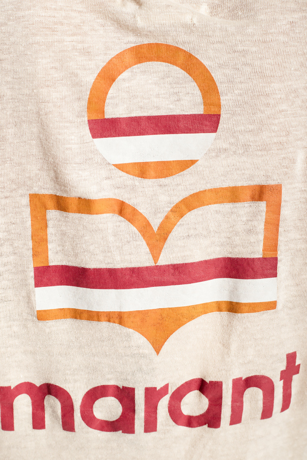 Light beige ‘Zewel’ crewneck T-shirt from Isabel Marant. Crafted from linen, this style features short sleeves and a printed colourful logo.