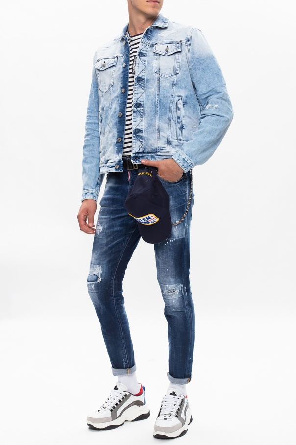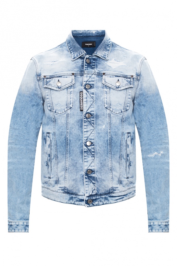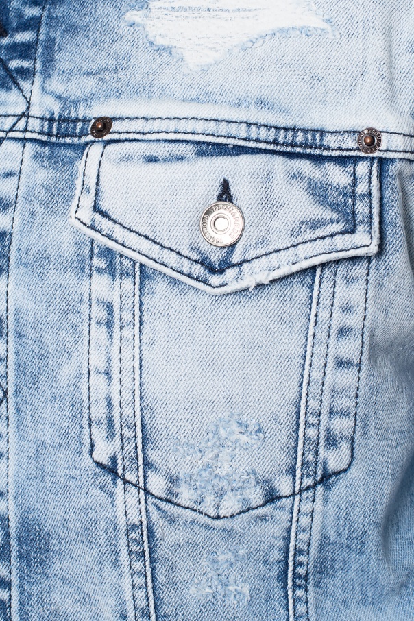 Light blue denim jacket from Dsquared2. This casual design is characterised by button fastenings, logo details, two flap pockets with buttons and two slip pockets.