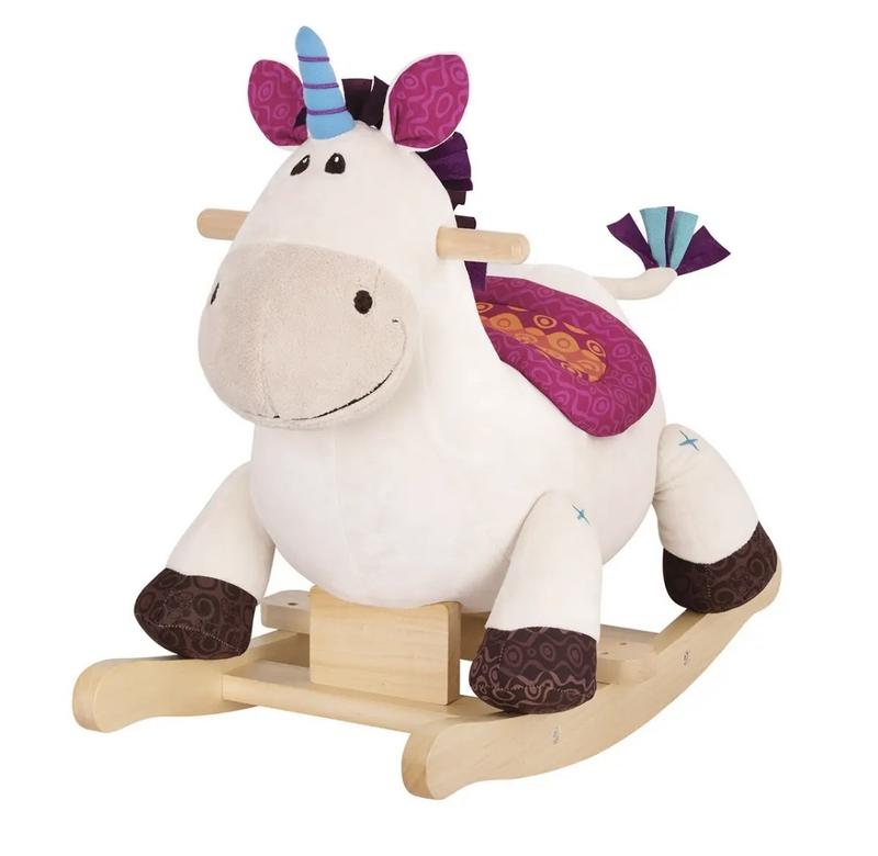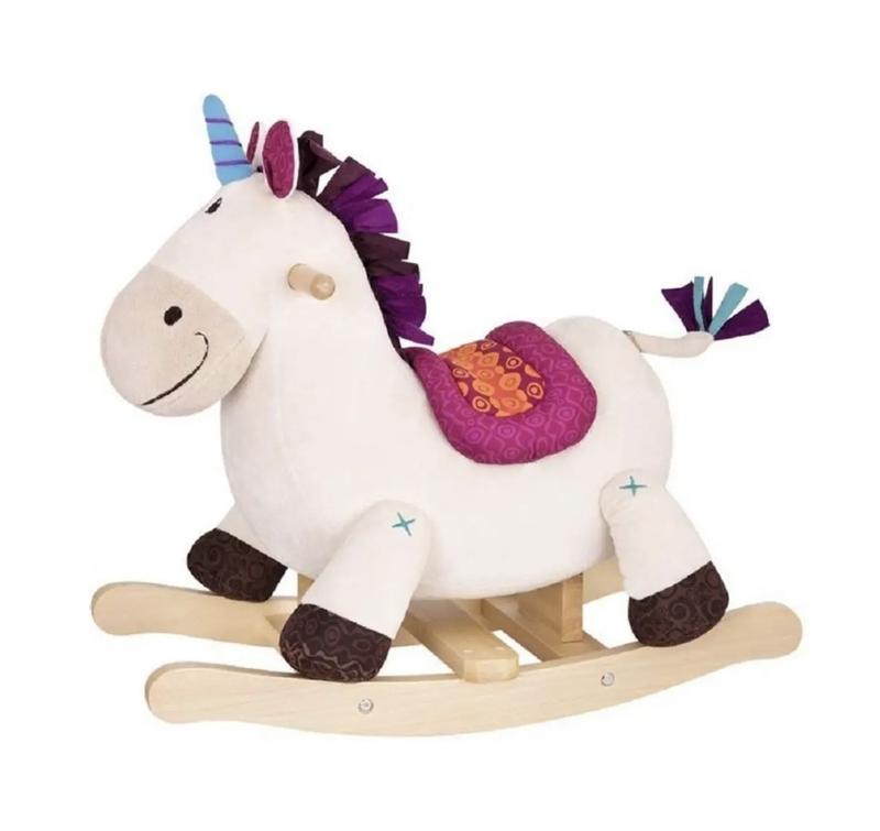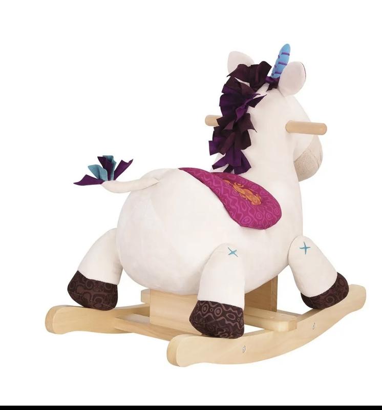 Яскрава, чарівна конячка єдиноріг, на якій можна кататися. Хитаючись, малюк почує цокіт копит.