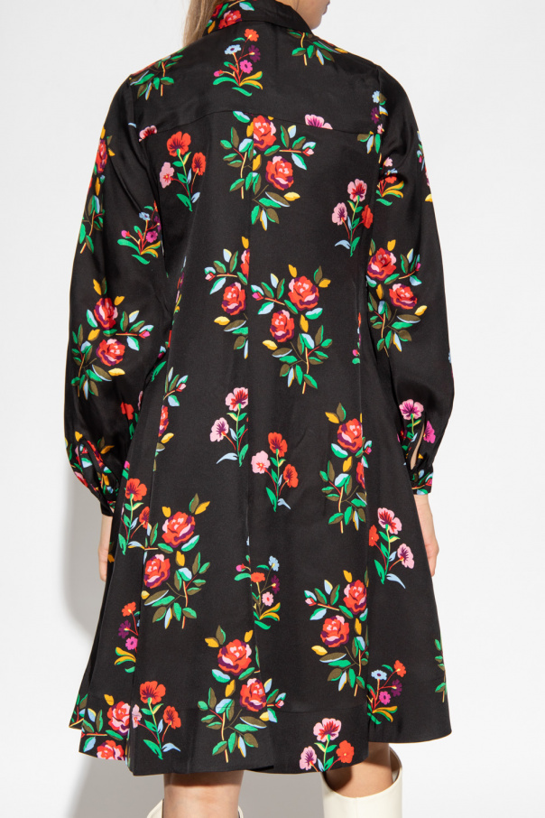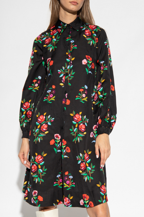 Black shirt dress from Kate Spade. Crafted from a silk blend, this style showcases a colourful floral motif, button fastenings and long sleeves with button cuffs.