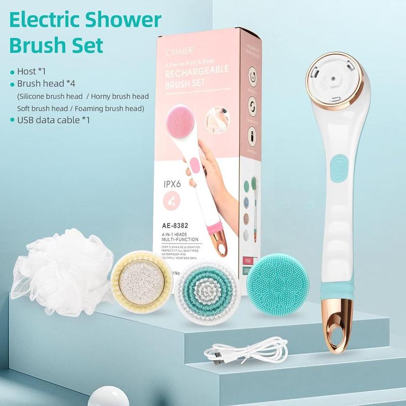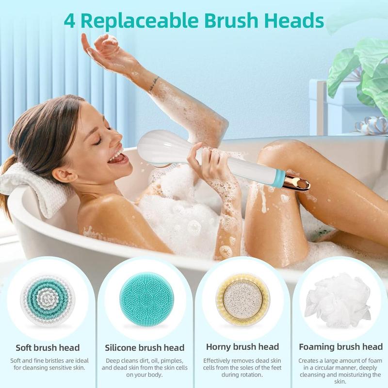 - 🧽【4 насадки с различными функциями】Этот электрический скрабер для тела поставляется с четырьмя различными насадками: силиконовая массажная щетка, щетка с мягкой щетиной, щетка с пемзой и щетка для ванны из люфы, которые можно использовать для очищения лица, ежедневного принятия ванны, для чистки спины, чистки ног и вращающихся массажеров, обеспечивая вам комфортные ощущения домашнего спа, чтобы расслабить ваше тело и улучшить состояние кожи.
