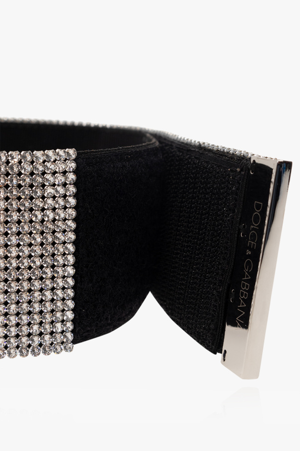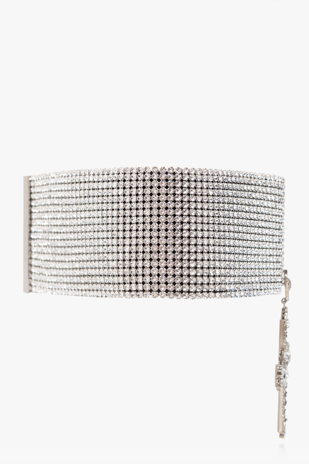 Silver-tone choker from Dolce & Gabbana x Kim. Encrusted with glossy crystals, this item adjusts via a velcro closure and features a cross pendant.