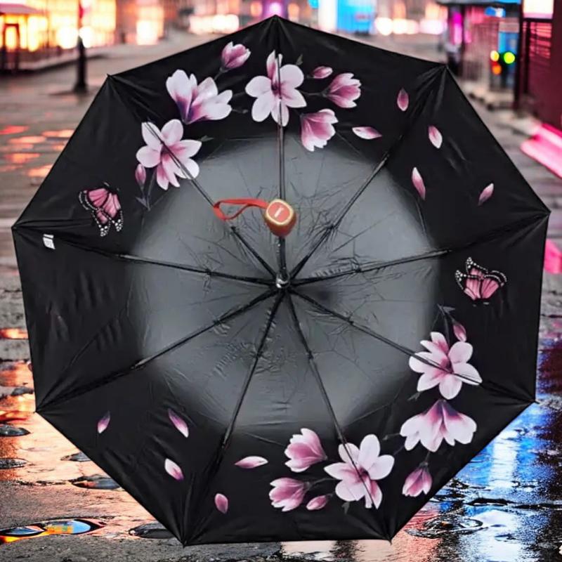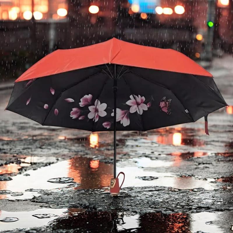 Материал:Полиэстер ,Пол:Для женщин ,Вид:Складной ,Механизм:Полуавтомат ,Материал спиц:Стальные ,Принт:Цветочный ,Размер купола:Средний ,Количество спиц:8-12 шт. ,Особенности:С чехлом , Система "антиветер" ,Описание