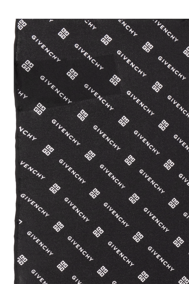 Black pocket square from Givenchy. Made of silk, this item features a white monogram.