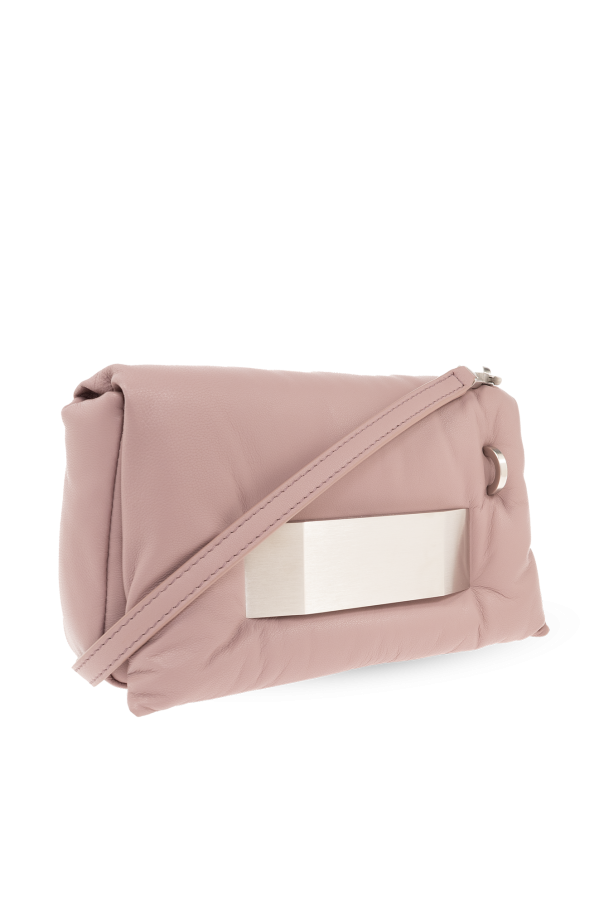 Pinkish-purple ‘Pillow Griffin’ shoulder bag from Rick Owens. Made from lamb leather, this design secures with a magnetic fastener and showcases a logo application, silver-tone metal hardware as well as a detachable shoulder strap and one internal compartment with six card slots, one slip pocket and one zip pocket.
