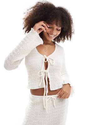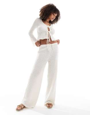Pull&Bear waffle texture tie front top and trouser co-ord in ecru