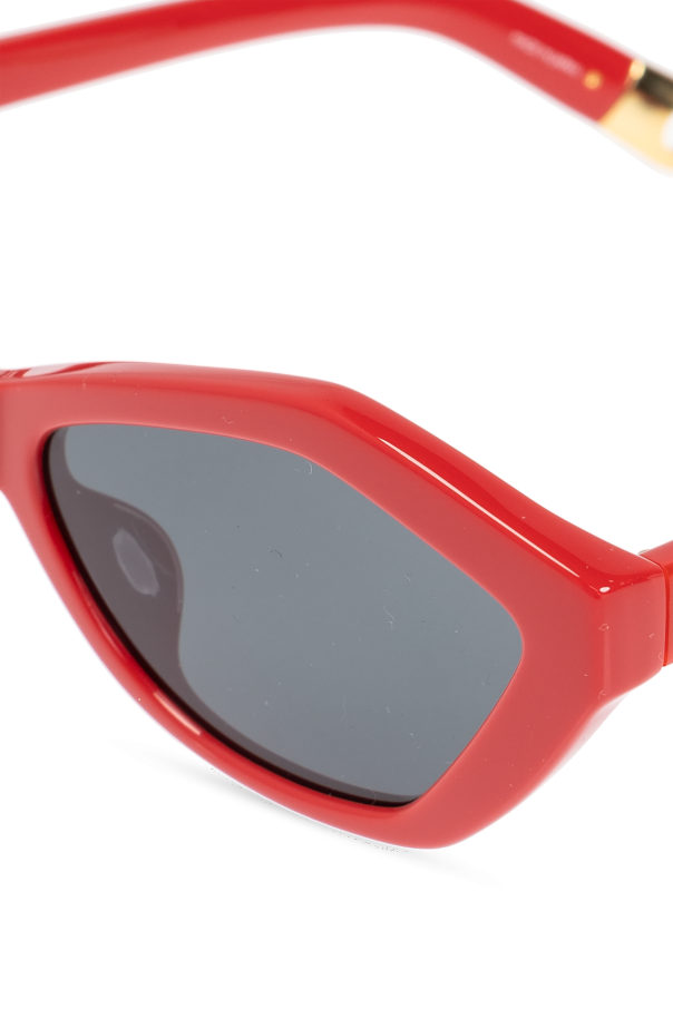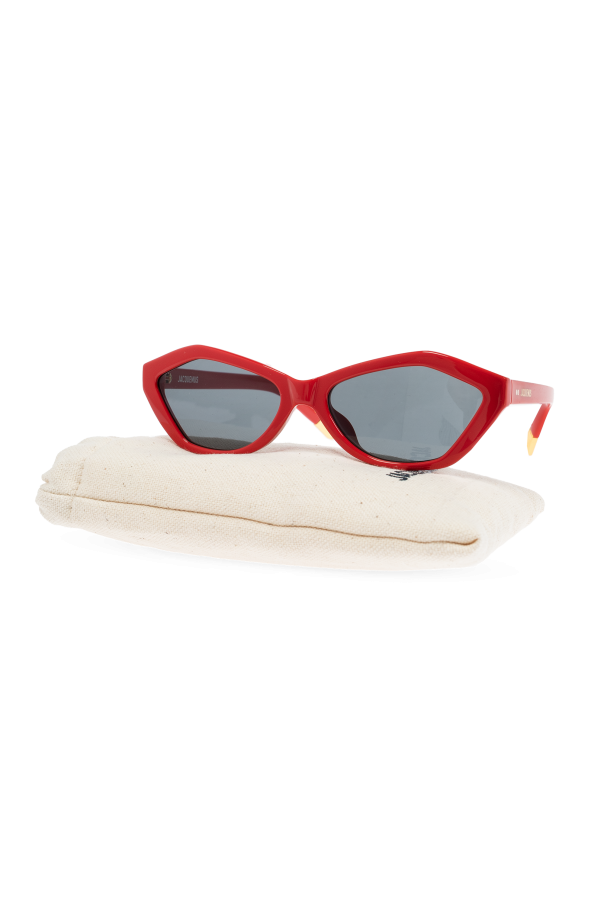 Introducing the Jacquemus Sunglasses – a resplendent accessory from an exclusive fashion collection. These sunglasses boast a distinctive angular design with subtly rounded edges, exuding a modern and stylish allure. The bold, intense red hue of the frames enhances their vivacity and elegance, making a striking statement. Crafted from premium acetate, the frames offer both durability and lightweight comfort. The dark-tinted lenses, in shades of gray, provide excellent protection against the sun\'s rays. Luxurious gold accents adorn the temple tips, infusing a touch of opulence. Presented with a fabric case, these sunglasses embody exclusivity and meticulous attention to detail, reflecting the exquisite craftsmanship of their creator, Simon Porte Jacquemus. Why Choose This Product? Modern Design: Unique angular shape with a stylish flair. Premium Materials: Made from durable, lightweight acetate. UV Protection: Dark grey lenses safeguard your eyes. Luxurious Accents: Gold details add a touch of elegance. Exclusive Presentation: Includes a fabric case for added sophistication.