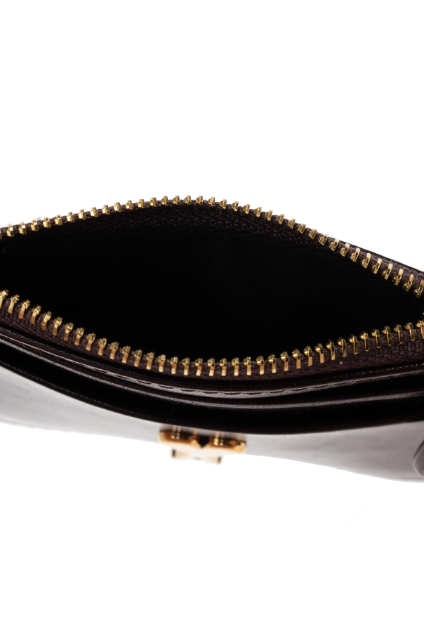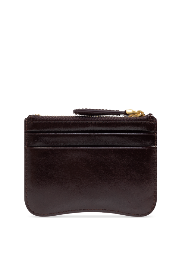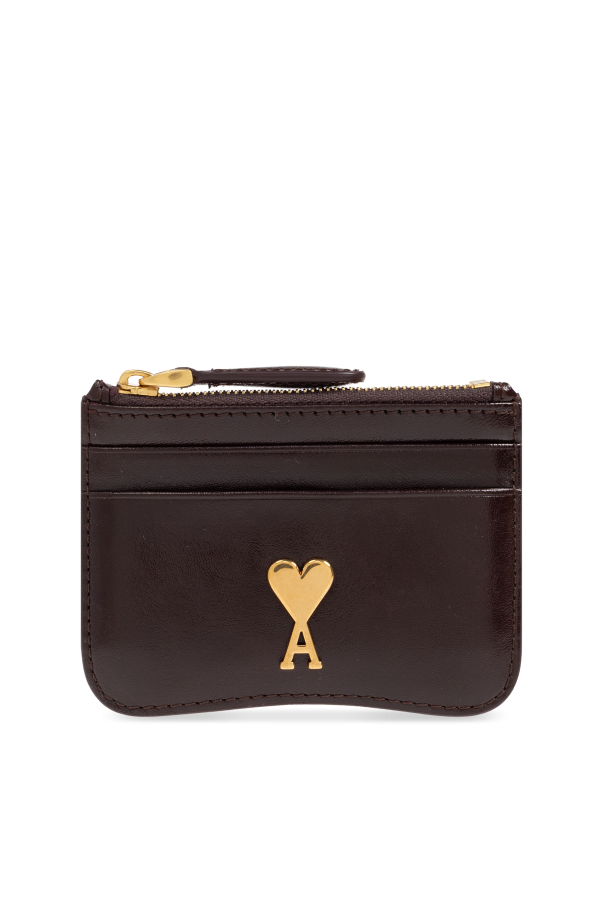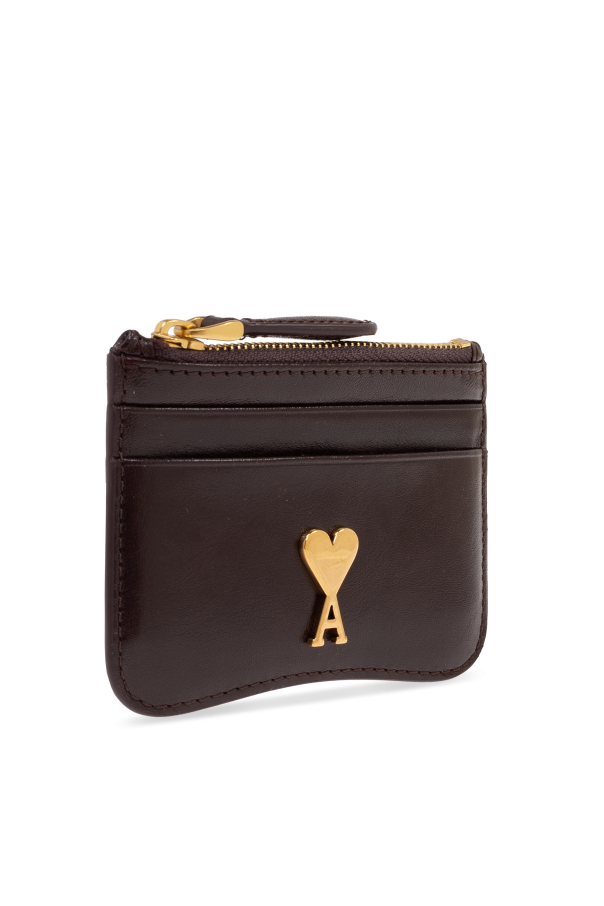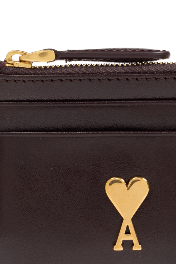 Discover the epitome of sophistication with the Portfel z logo by Ami Alexandre Mattiussi. This exquisite dark brown wallet, crafted from smooth calfskin leather, boasts a minimalist yet luxurious design. The wallet\'s rectangular form is accentuated by rounded corners and adorned with a golden metal logo on the front, depicting the letter \"A\" crowned with a heart. This emblematic detail serves as a testament to the brand\'s heritage and its playful elegance. Functionality meets style with multiple card slots and a top zipper, also in gold, providing both security and a touch of opulence. The interior is lined with a dark-hued fabric, ensuring a refined finish. Additionally, it features four slip pockets and a zipped compartment, showcasing both practicality and sophistication. Why Choose This Product? Crafted from premium calfskin leather. Timeless design with a golden emblem. Ample storage with multiple compartments. Designed by renowned fashion house AMI.