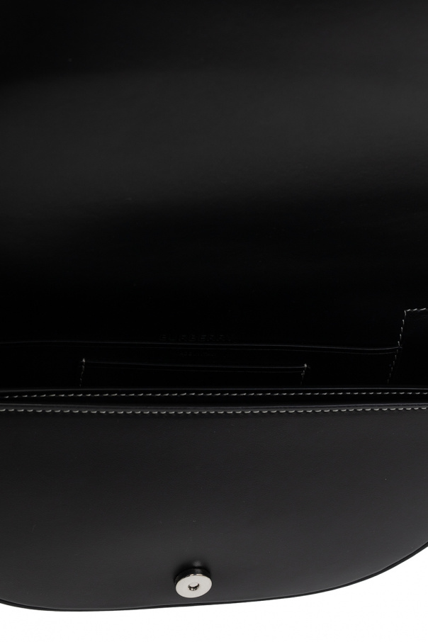 Black belt bag from Burberry. Crafted from calf leather, this item secures with a magnetic fastener and features a zip pocket on the front, an embossed logo pattern, a slip pocket at the back, an adjustable strap, silver-tone hardware and one internal compartment with two slip pockets and one card slot.