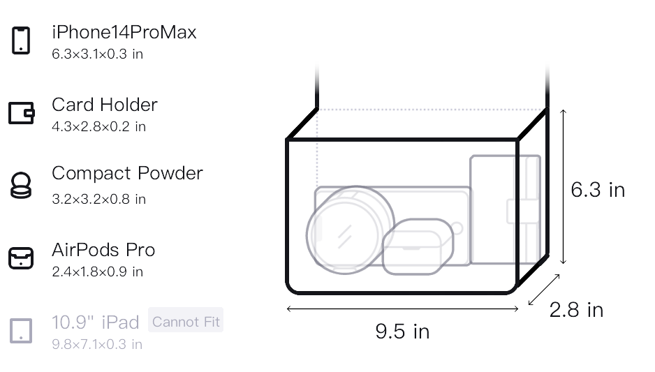 - Internal Structure:Zip Pocket, Cell Phone Pocket, ID Pocket