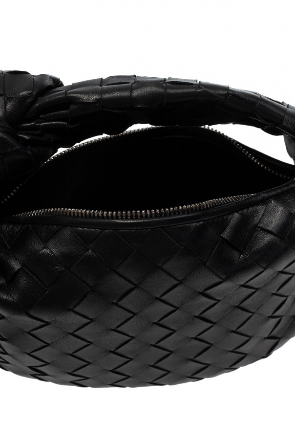 Black ‘Jodie Mini’ handbag from Bottega Veneta. Crafted from lamb leather and calf leather with the brand's iconic ‘Intrecciato’ weave, this design features a zip fastening, a half-round handle, silver-tone metal hardware and one internal compartment.
