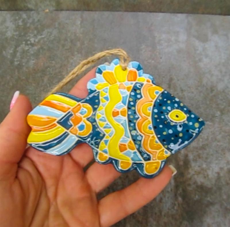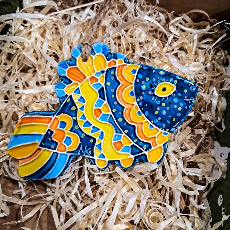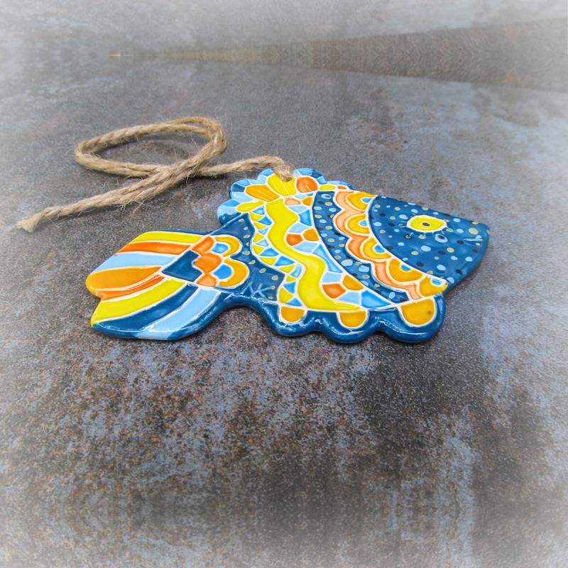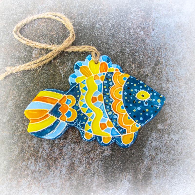 Керамическая плакетка на стену Рыба - настенный декор ручной работы из белой глины, размеры 110х80 мм. Можно использовать как декоративный элемент детской или ванной комнаты, прекрасно чувствует себя на улице, не боится влаги и низкой температуры. Настенный декор рыба - отличный небольшой украинский подарок с смыслом домашний декор. Плакетка очень легкая (около 40 г), поэтому может использоваться как украшение на новогоднюю елку.
