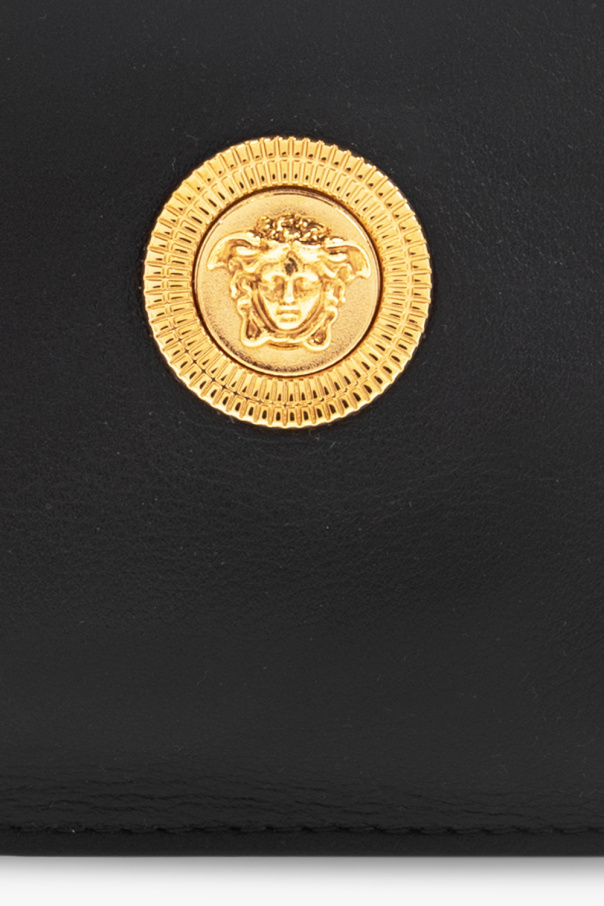 Black pouch from Versace. Emblazoned with the brand\'s signature Medusa hardware, this item features a zip fastening, a lobster clasp and on the side and one internal compartment.