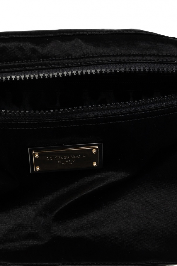 Black \'Marsupio\' belt bag from Dolce & Gabbana. Distinguished with a metal logo plaque, this design fastens via a two-way zip and features two zipped pockets on the sides, an adjustable strap and one internal compartment with a zip pocket.