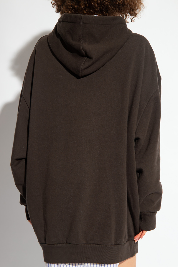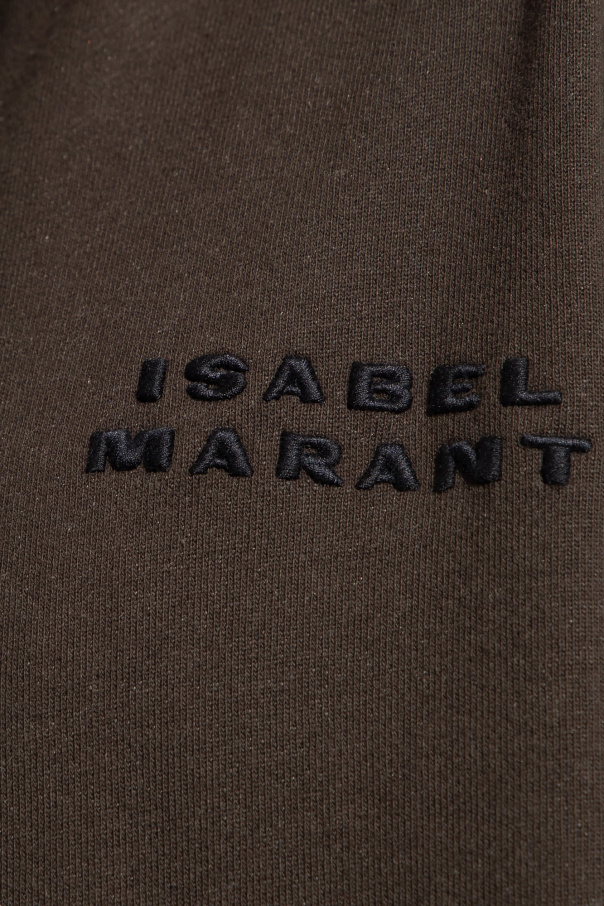 Black ‘Solena’ sweatshirt with a drawstring hood from Isabel Marant. Made of cotton, this style showcases an embroidered logo pattern, a kangaroo pocket, long sleeves and ribbed trims on the bottom hem and cuffs.