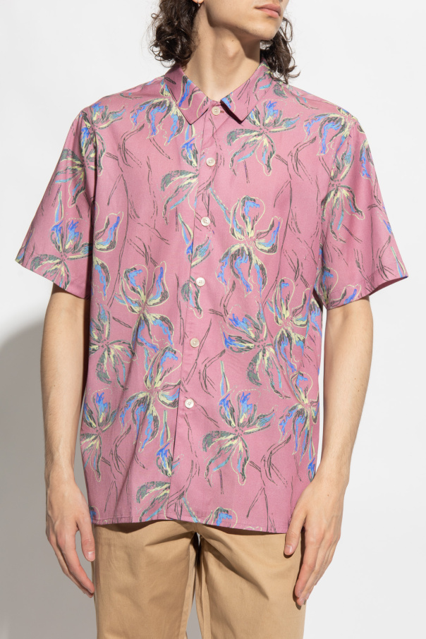 Pink shirt with short sleeves from PS Paul Smith. Made of cotton, this garment features button fastenings, a multicolored floral print and side vents.