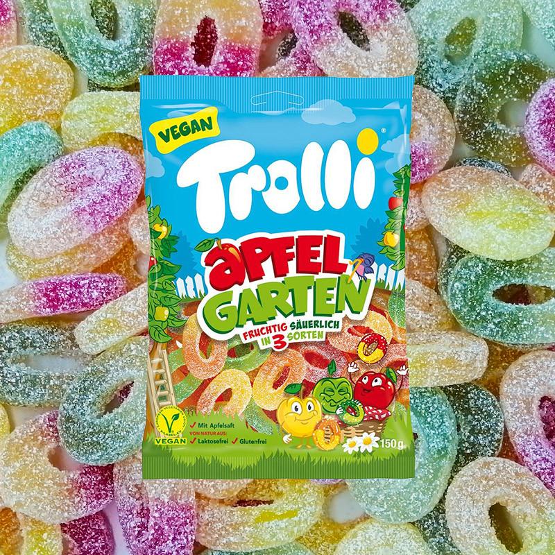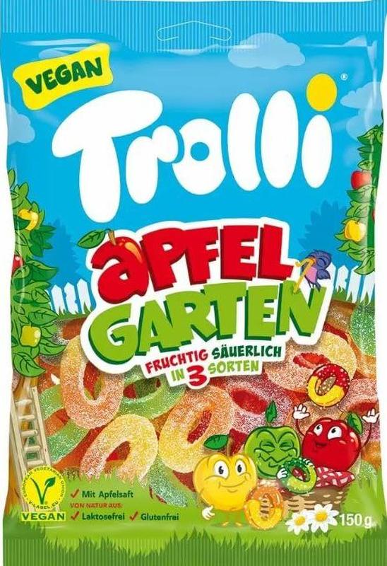 Яблочные кольца веганские кислые мармеладные конфеты Trolli.