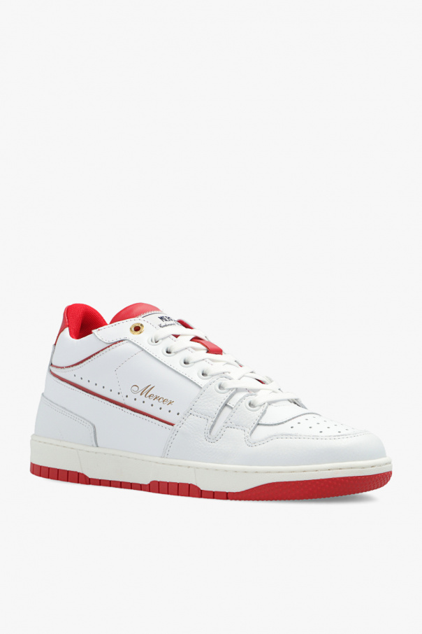 White, brown and red ‘The Brooklyn’ sneakers from Mercer Amsterdam. Crafted from leather, this lace-up pair features a gold-tone logo print and red rubber sole.