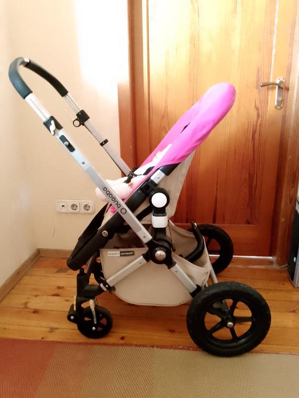 Коляска в красивом бежевое-розовом цвете, не выиграет! Люлька то вообще супер, мне очень понравилась. Ручка перекладная, регулируется в два положения. Текстиль легко снимается, можно стирать в стиральной машине. В управлении очень легкое в ходе, легко собирается и разбирается, занимает не много места в багажнике авто!!!
