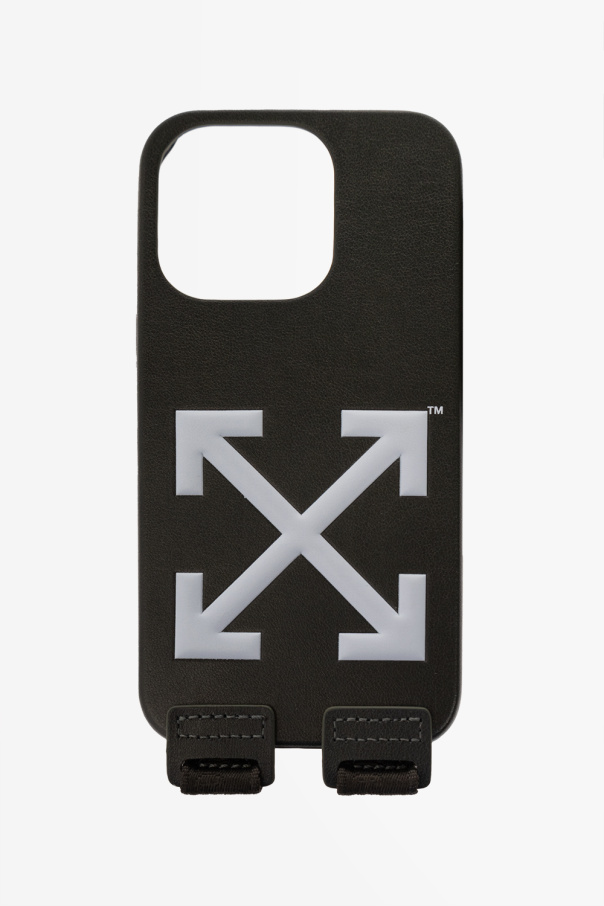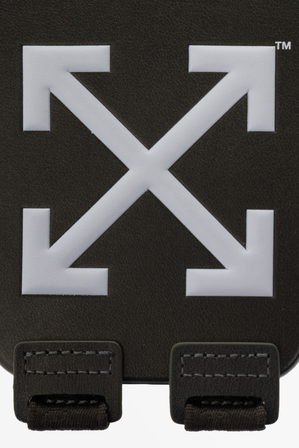Dark green iPhone 14 Pro case from Off-White. Decorated with a white logo, this design features an adjustable strap with a logo embroidery.