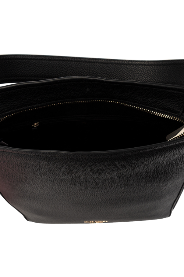 Black ‘Hudson Large’ shopper bag from Kate Spade. Crafted from cow leather, this design fastens via a zip and showcases a metal logo plaque on the front, a back slip pocket, a detachable half-round handle, an adjustable shoulder strap, light gold-tone metal hardware and one internal compartment with one slip pocket and one zip pocket.