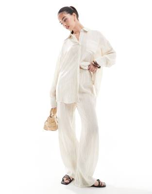 4th & Reckless lighweight textured beach shirt and trousers co-ord in beige